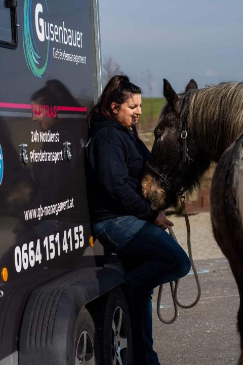 Meine Schwester Eva Gusenbauer sorgt für einen sicheren Transport unserer Lieblinge. Auch im Notfall ist sie rund um die Uhr erreichbar und bringt Pferde sicher in die Klinik oder an den gewünschten Ort. Alle meine Kunden bekommen 10% Rabatt auf Evas Transport-Dienstleistungen.